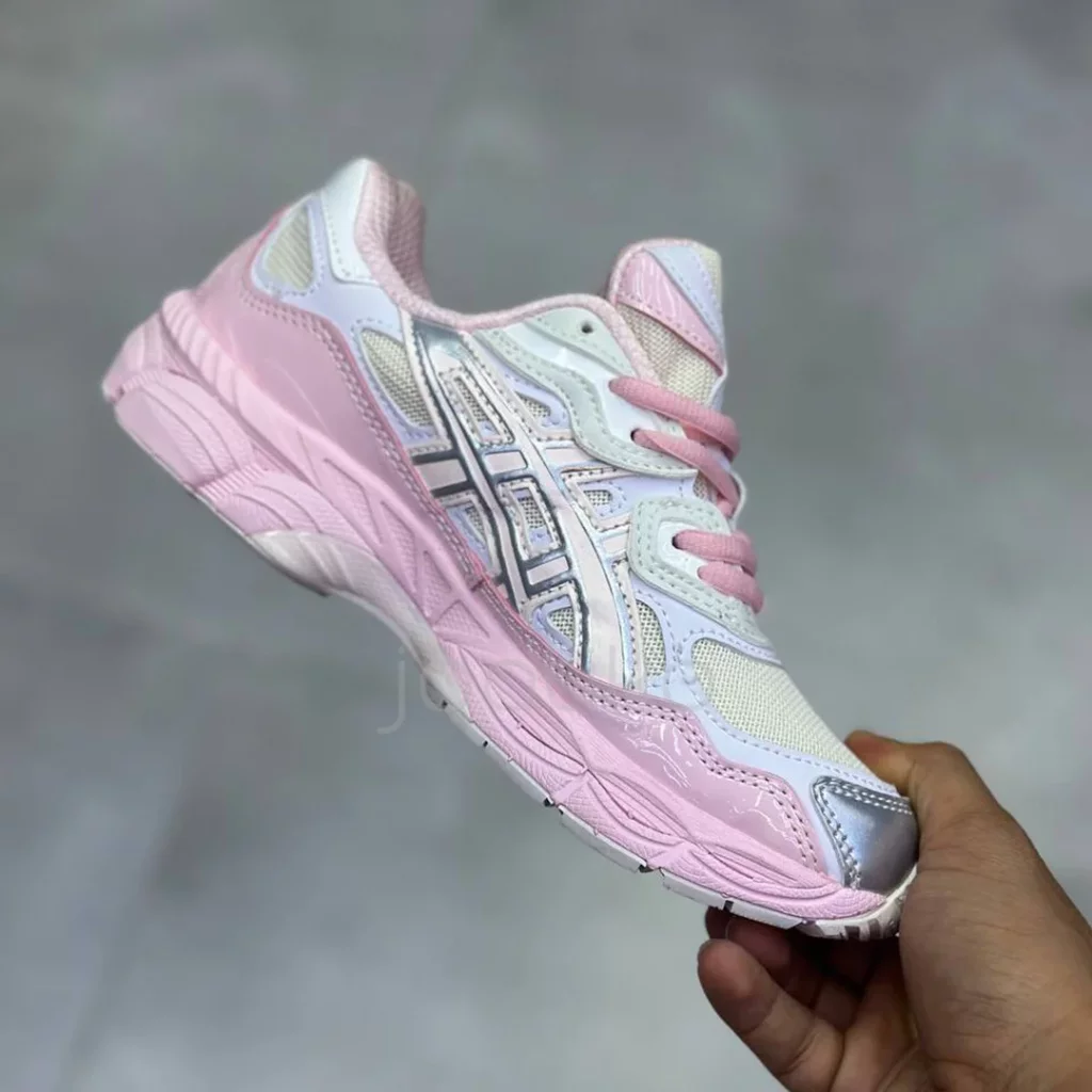 کفش اسیکس ژل ان وای سی کیکی یانگ ژانگ صورتی ASICS GEL-NYC Kicki Yang Zhang Pink Cream Pure Silver
