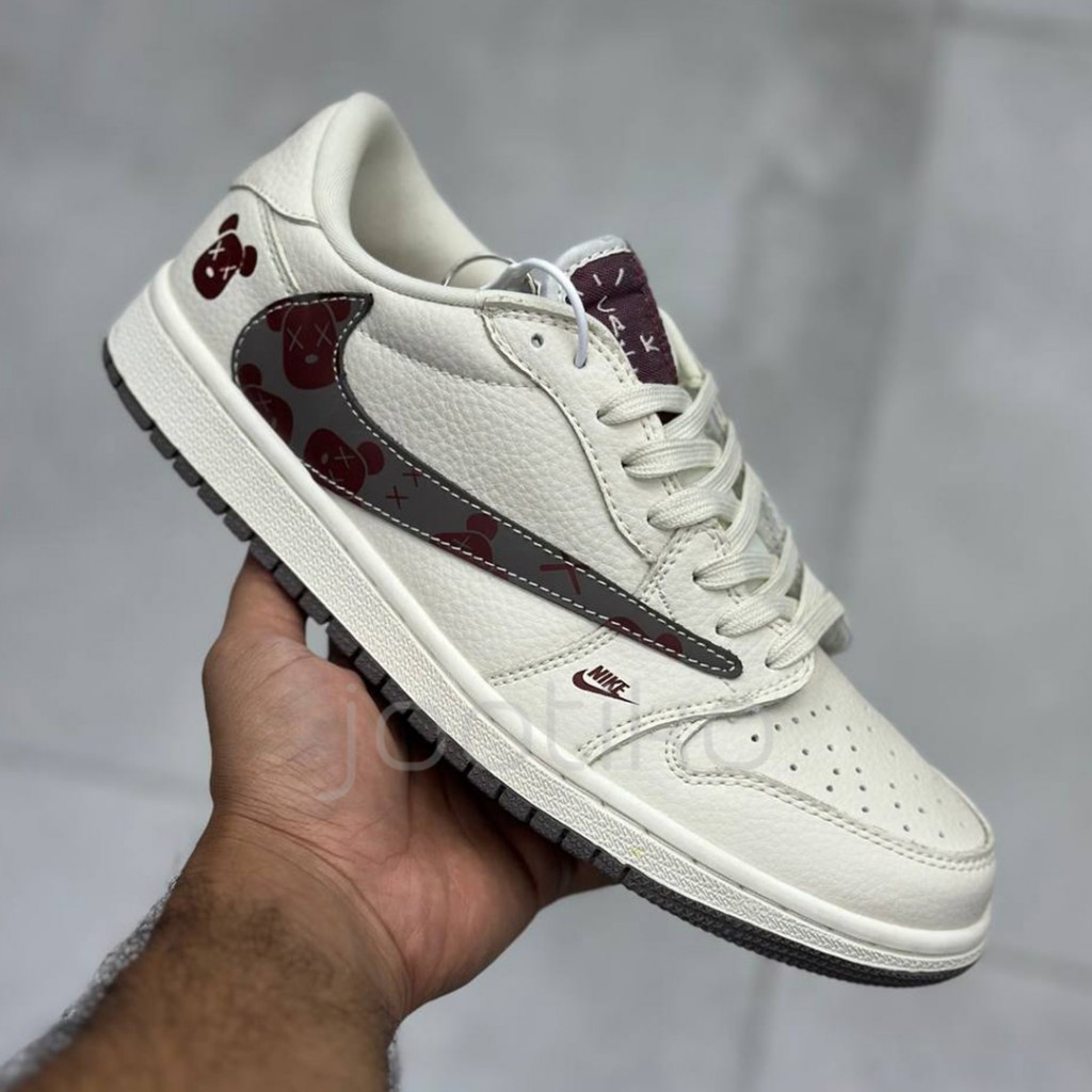 کفش نایک ایر جردن وان لو کاز کرم طوسی زرشکی  Nike Air Jordan 1 Low Kaws Cream Grey Crimson