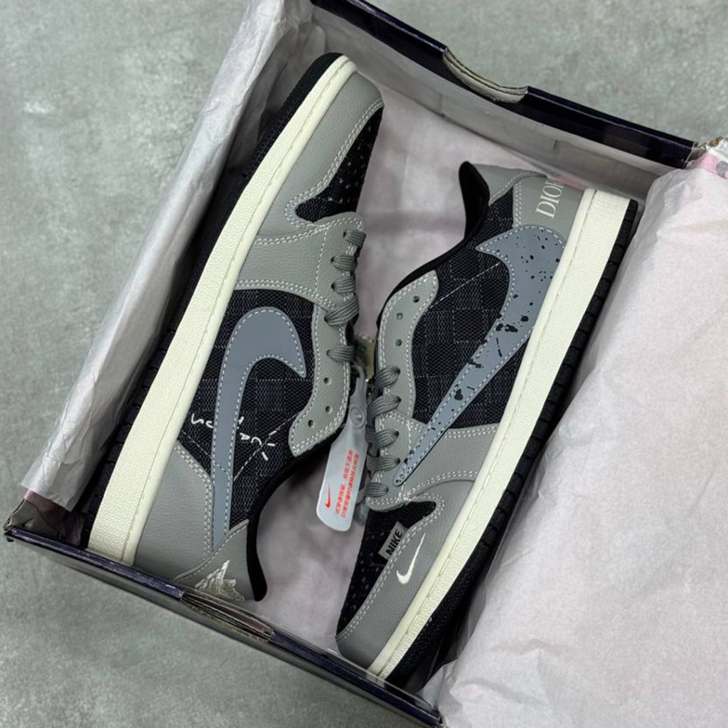 نایک ایر جردن وان لو دیور خاکستری Nike Air Jordan 1 Low Dior Grey Black